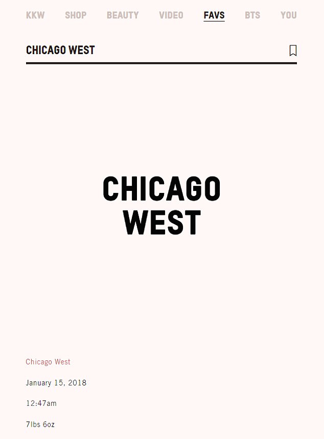E duke pasur parasysh emrin e motrës dhe vëllait të saj, Chicago West merr disi kuptim. Kim bëri të ditur zgjedhjen e tyre në blogun e saj të premten, në të njëjtën formë si lajmi i lindjes.