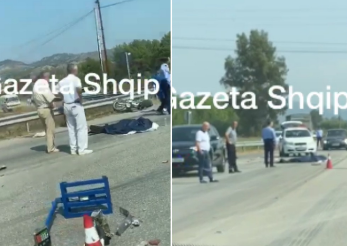 Në pamjet e siguruara nga Gazeta SHQIP shihet një person i shtrirë në tokë dhe i mbuluar, ndërsa raportohet se është aksidentuar duke ecur me motor.