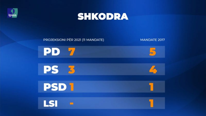 E përkthyer në mandate, rezulton se në qarkun e Shkodrës do të triumfojë aleanca PD-AN me 7 mandate. Krahasuar me vitin 2017 PD rritet me dy mandate në Shkodër.