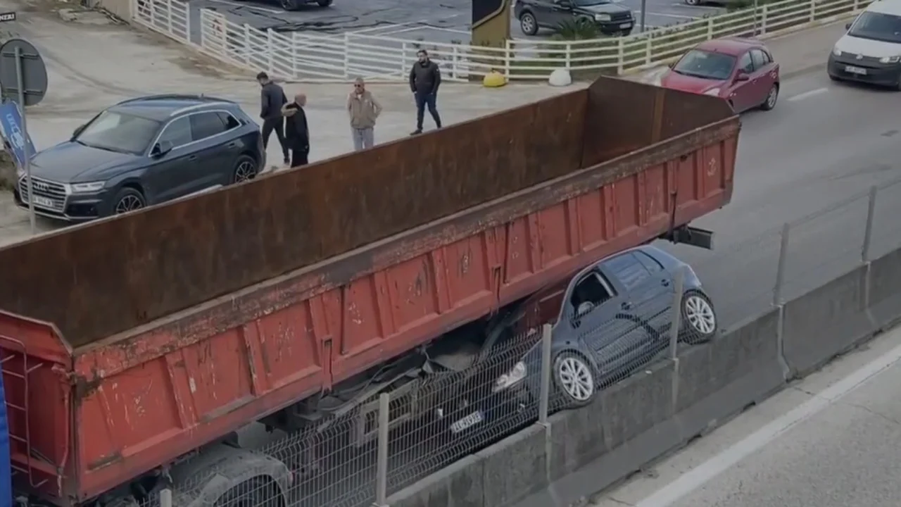 Nga pamjet e siguruara nga Top Channel, shihet se një automjet ka përfunduar poshtë një kamioni pas përplasjes. Për pasojë është shkaktuar trafik në këtë aks rrugor.