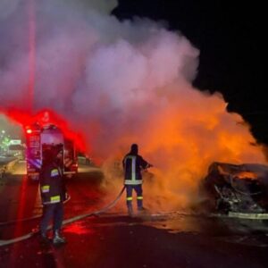 -A. K., 24 vjeç, drejtuesi i automjetit betoniere, për veprat penale “Shkelja e rregullave të qarkullimit rrugor”, “Drejtimi i automjetit në mënyrë të parregullt” dhe “Largimi nga vendi i aksidentit”. Më datë 19.03.2025, rreth orës 23:50, në segmentin rrugor ”Vorë – Fushë Krujë”, automjeti tip “Mercedes Benz” me drejtues shtetasin E. L., 25 vjeç (i pajisur me leje drejtimi), që dyshohet se lëvizte me shpejtësi tej normave të lejuara, ka goditur nga pas betonieren me drejtues shtetasin A. K. (pa leje drejtimi për këtë kategori mjetesh), që kishte ndaluar në karrexhatë, por nuk kishte ndezur bllokazhin. Nga goditja, automjeti tip “Mercedes Benz” është përfshirë nga flakët dhe për pasojë kanë humbur jetën drejtuesi dhe 3 pasagjerët. Pas aksidentit, drejtuesi i betonieres është larguar nga vendngjarja;