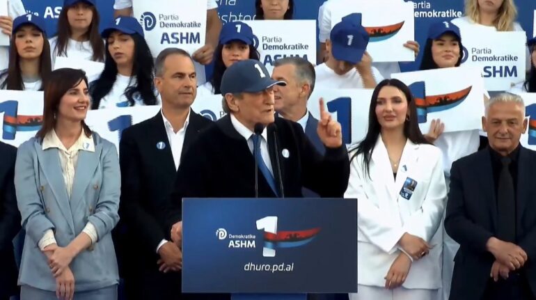 “La Civita-n e solli në Tiranë programi i Reganit, programi i atyre që besojnë në fuqinë e individit. Ne do subvencionojmë fermerin. Për 4 vite, do marrë fund problemi i pronave. Të përndjekurit politikë do të marrin dëmshpërblimet për katër vitet që vijnë. Rrogat dhe pensionet do të rriten derisa të jenë më lart se gjithë rajoni. Ky komb duhet të vijë sërish në moshën e rinisë së tij. Mund të vendosim arsimin e mesëm si të detyruar. Çdo student jashtë rrethit të tij do ketë bursën 200 euro. Do japim 30 mijë euro grant për çiftet e reja, që të blejnë apartamentin e tyre.”– tha Berisha.