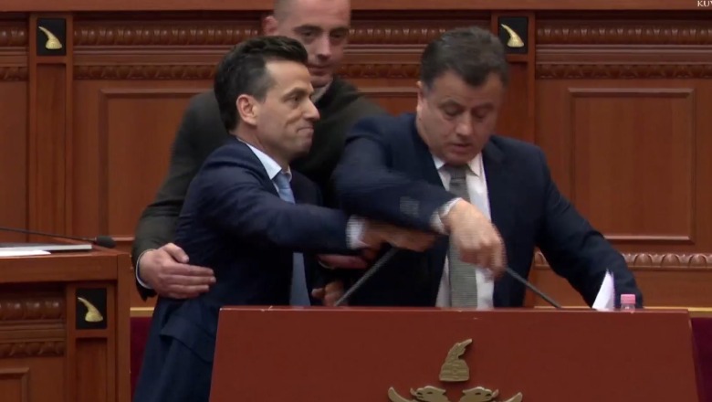 Kryetarja e Kuvendit, Elisa Spiropali, dhe deputeti demokrat Flamur Noka i kërkuan Shehajt të largohej. Situata përshkallëzoi në një përplasje fizike, gjatë së cilës Shehaj u nxor jashtë sallës nga Garda.