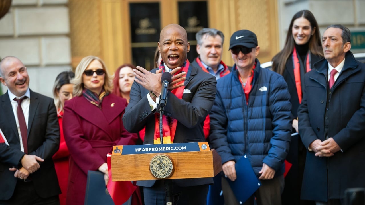 Adams është një figurë që ka tërhequr vëmendje për lidhjet e tij me komunitetin shqiptar në SHBA, i cili numëron rreth 40 mijë banorë vetëm në Nju Jork. Në qershor, ai organizoi një festë për kulturën shqiptare në rezidencën zyrtare, ndërsa në gusht u takua me ambasadorin e Shqipërisë në SHBA.