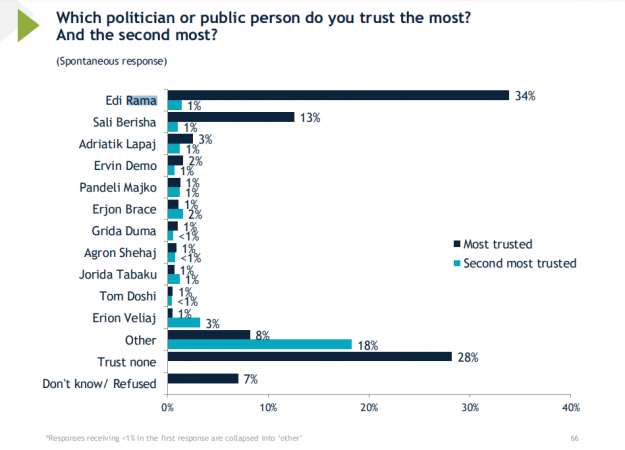 Një sondazh i publikuar nga Qendra e Institutit Ndërkombëtar Republikan (IRI) tregon se cilin nga politikanët mbështesin më shumë shqiptarët.