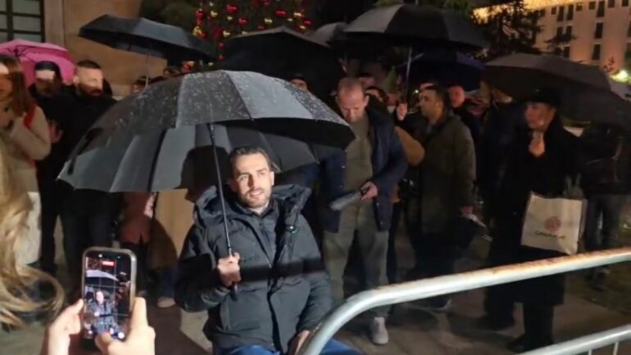 Lapaj u rikthye sot të protestonte para kryeministrisë, pasi më herët u dërgua në spital sepse u lëndua gjatë përplasjes me policinë. Uniformat blu ndërhynë për të hequr çadrën e ngritur nga “Shqipëria Bëhet” dhe në një moment, Lapaj u godit nga një bombol gazi që i ra në kokë. Ai u dërgua me urgjencë tek spitali i Traumës dhe pasi mori ndihmën mjekësore, iu rikthye protestës.