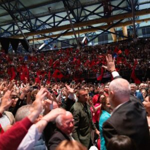 “Është dita që më shumë të dëgjoja me ju të rinjtë. Pasi kishim këtë model të rinjsh, që nuk mallkojnë dhe servilosen. Duam ta sjellim të renë si koncept të jetuarit dhe të menduarit. Modelin e të riut kritik. Ndryshimet e mëdha vijnë nga pak njerëz, nuk vijnë menjëherë. Është një dorë njerëzish me ideale, edhe ne kështu e kemi nisur, një ditë do jemi shumicë absolute. Ka të rinj që i bien për shkurt, por në fakt ky model e ka sjellë Shqipërinë në këtë derexhe. Arsimi është kryesorja, janë 3 vende bosh dhe vijnë të tjerat. Ne duam ta bëjmë në 5% të buxhetit për arsimin, më vonë në 7%.Vendet e vogla prodhojnë ide novatore më shumë se vendet e mëdha. Ne do ta transformojmë arsimin. Kini besim se kjo bëhet. Malta nuk ka burime natyrore uji, ndërkohë ka 24 orë ujë pa ndërprerje, ndërsa ne ende flasim për ujë me gjithë këtë pasuri të madhe ujore.”-tha Lapaj.