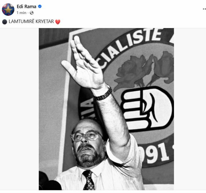 Kryeministri Edi Rama ka reaguar për ndarjen nga jeta të ish-kreut të Partisë Socialiste, Fatos Nanos. Rama ka postuar një foto të ish-kryeministrit, teksa krah saj shkruan “LAMTUMIRË KRYETAR”.