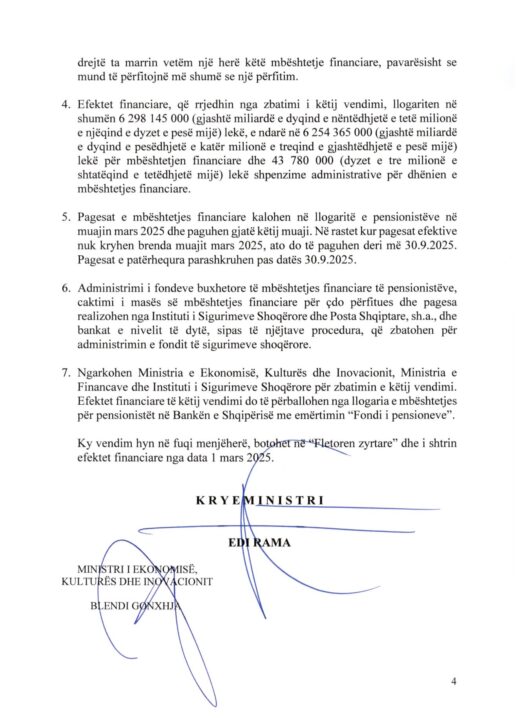 “Jo vetëm që unë nuk gënjej po flas me përgjegjësi të plotë për çka ka të bëjë me detyrën që më ka dhënë populli, e meqë vizion kanë akuzën, program kanë shpfijen dhe forcë udhëheqëse kanë gënjeshtrën, kudo, kurdoherë e për çdo gjë, e përhapën edhe lajmin që s’ka bonus për pensionistët! Por ja që vendimi për bonusin është marrë që në 9 janar dhe shpërndarja nis në 1 mars. Ta gëzojnë pensionistët dhe Zoti paftë e bëftë për ata që luajnë edhe me nervat e tyre.”- shkruan Rama.