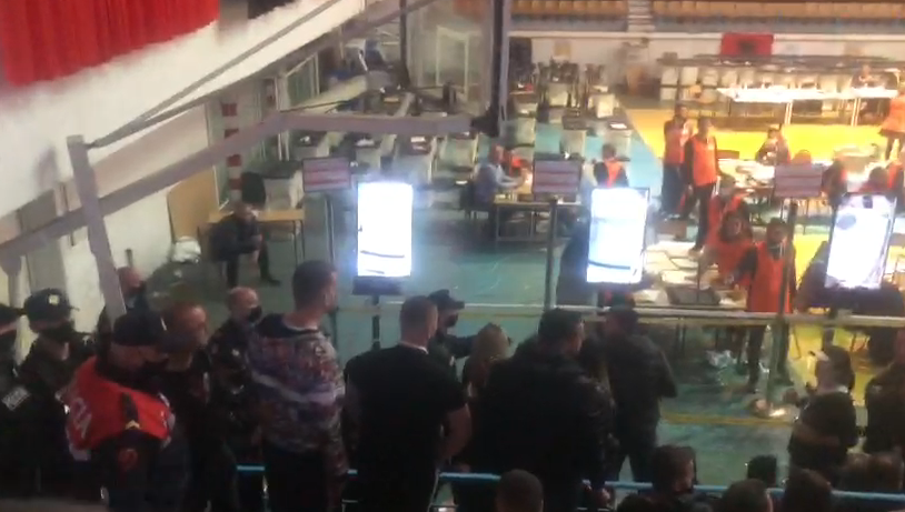Policia po kontrollon të gjithë të pranishmit në ambjentet e pallatit të sportit për dokumentacioni përkatës, dhe po largon prej aty të gjithë personat që nuk e kanë një dokumentacion të tillë.