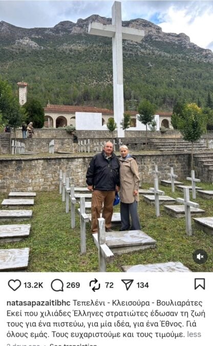 Bashkëshortja e tij ka nxjerrë disa fotografi nga udhëtimi në vendin tonë, ku shkruan: “Tepelenë – Këlcyrë – Vouliarates. Aty ku mijëra ushtarë grekë dhanë jetën për një besim, për një ide, për një Komb. Për të gjithë ne. I falënderojmë dhe i nderojmë.”