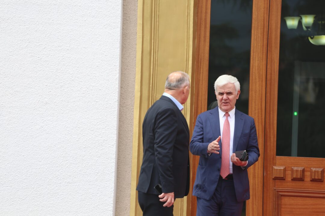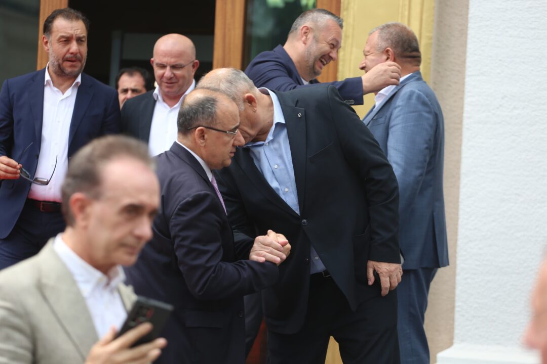 Pavarësisht disfatës elektorale, deputetët demokratë “veshën” një buzëqeshje. Gazment Bardhi sheh me ngazëllim Elda Hotin.