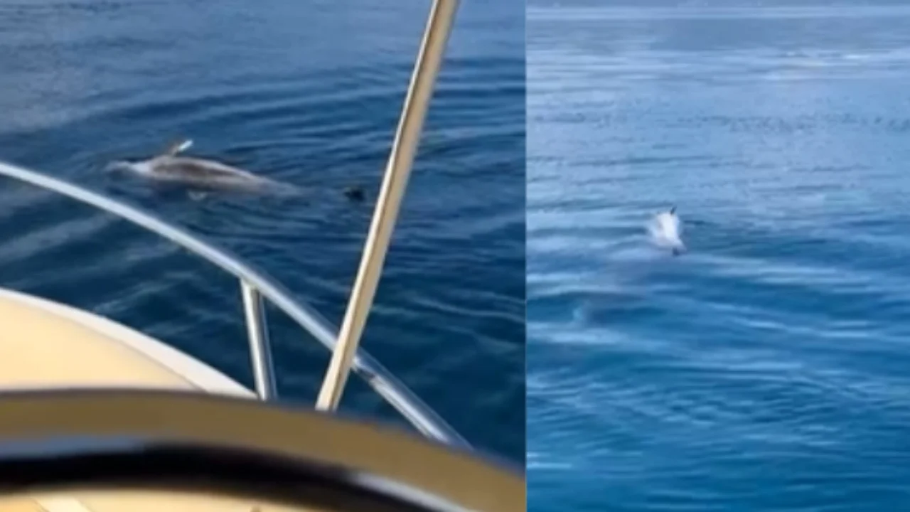 Një video e xhiruar në bregdetin e Vlorës shihet një delfin i ngordhur, ndërsa një tjetër delfin rrotullohet rreth tij dhe tenton disa herë ta shtyjë, sikur përpiqet ta ndihmojë.