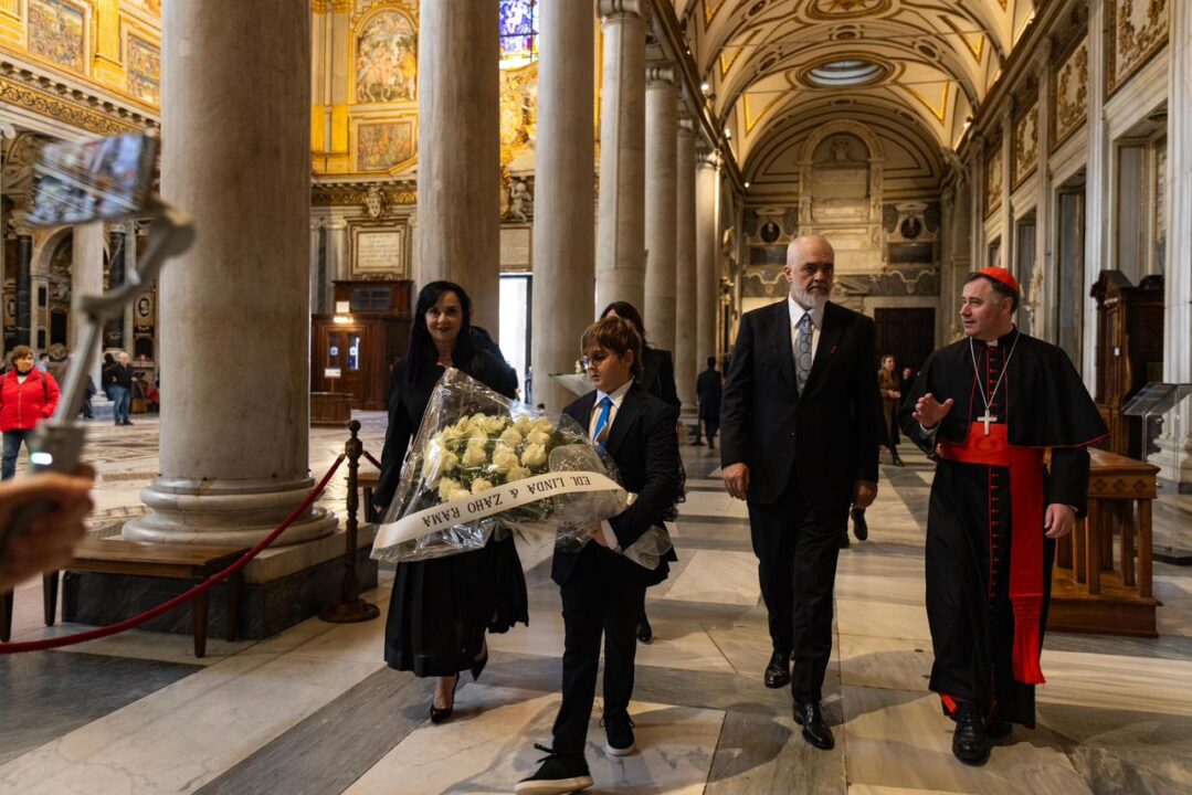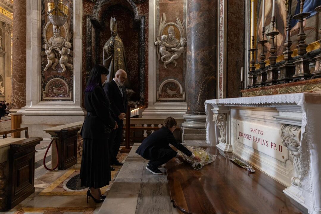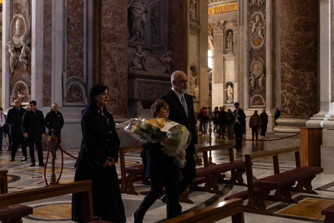 Kryeministri Edi Rama po vijon vizitën zyrtare në Vatikan dhe së fundmi është ndalur në varrin e Papa Françeskut, ka kryer homazhe bashkë me gruan dhe djalin e tij.