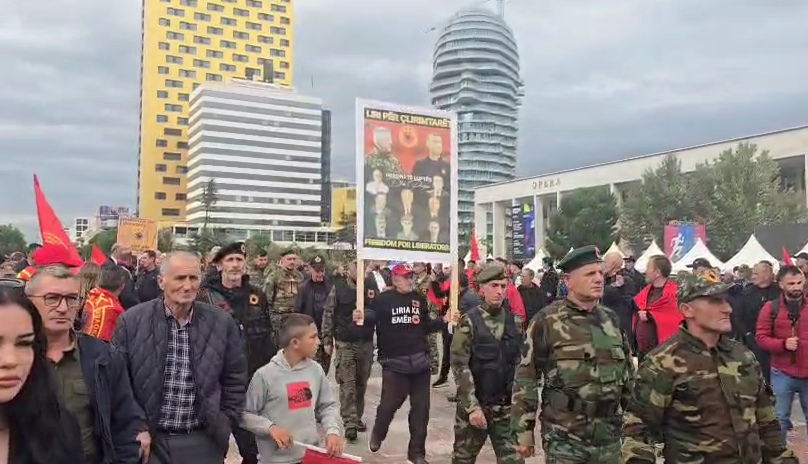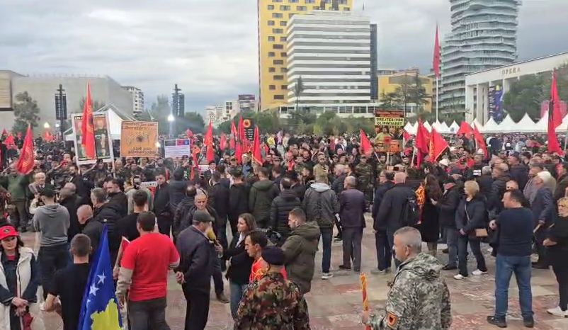 Qindra qytetarë janë mbledhur sot në Sheshin “Skënderbej” në Tiranë, për të marrë pjesë në protestën në mbështetje të ish-krerëve të UÇK-së që ndodhen në paraburgim në Hagë.