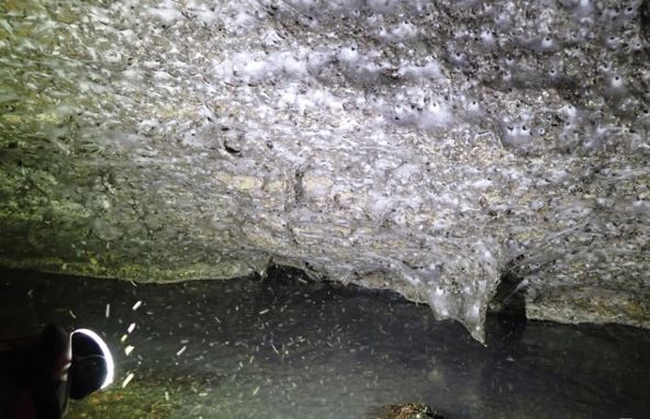Thellë brenda një shpelle të errët, të mbushur me squfur në Sarandapor, studiuesit kanë zbuluar rrjetën më të madhe të merimangës në botë, me më shumë se 111,000 merimanga.