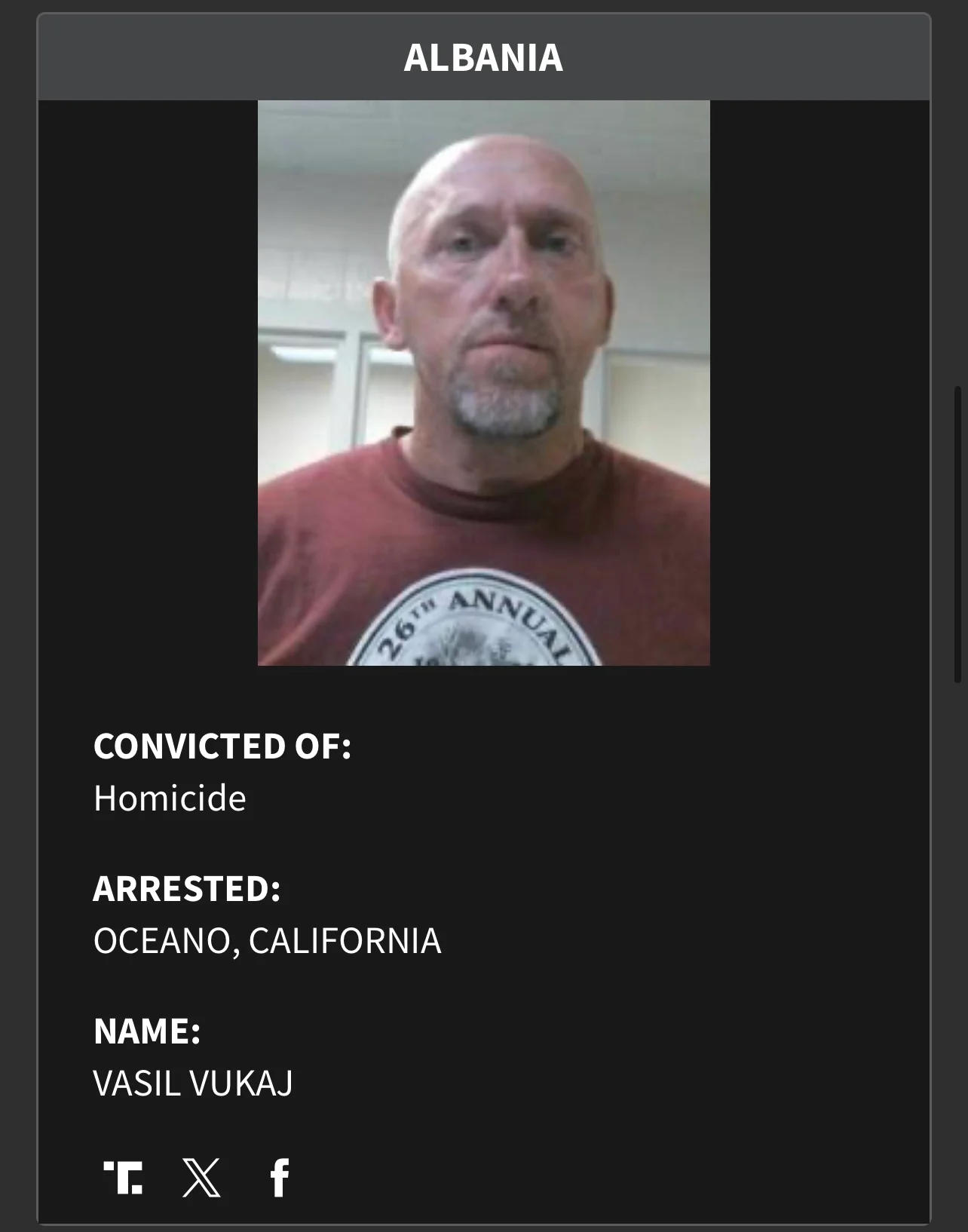 Marian Makai – i dënuar për vjedhje, sjellje të çrregullt dhe kërcënime terroriste, i arrestuar në Kaliforni.