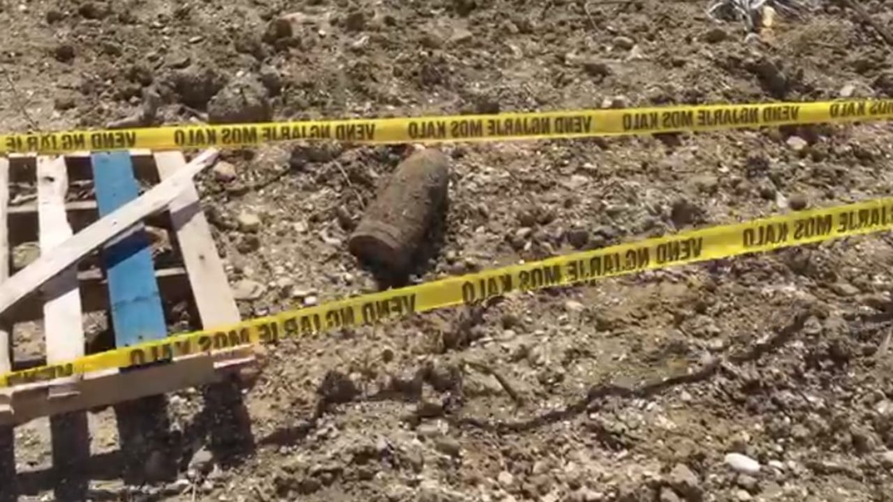 Sipas njoftimit të Policisë, rreth orës 08:50, punonjësit e një firme që po pastron kanalet kulluese në zonë kanë hasur predhën gjatë punimeve.
