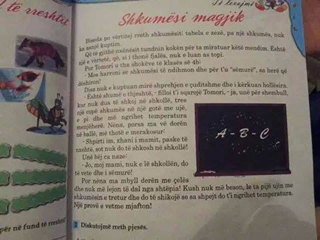 Gabimet gramatikore, kuptimore, të cilat deformojnë gjuhën shqipe, i vëren pothuajse te një pjesë e mirë e teksteve shkollore të ciklit 9-vjeçar. Rasti i dy ditëve më parë, nuk është i pari, por i disati në listën e akuzave e denoncimeve të vazhdueshme, jo vetëm nga gjuhëtarë, por edhe nga opinionistë, që duke pasur fëmijë në ciklin e ulët, janë përballur me fragmente që përcjellin përmbajtje abuzive dhe të padenjë për moshën e fëmijëve që i mëson ato. I tillë ishte rasti i tekstit të gjuhës shqipe të klasës së katërt, i botuar në gazetën Shqip, në mars të këtij viti, ku i bëhej reklamë një banke private, për të ilustruar mënyrën e kursimit të parave. “Gjergji dhe Joni, dy shokë klase duke shkëmbyer fotot e lojtarëve të kombëtares gjatë pushimit midis orëve. Joni blen nga Gjergji një foto për 1000 lekë. Joni që i fiton këto para do të blejë një biçikletë, por i duhen edhe shumë të tjera, sepse biçikleta kushton shumë më tepër se aq. Në ndihmë na i vjen Albana, e cila e këshillon që këto para t’i fusë në bankë dhe të hapë një llogari, ashtu siç ajo ka bërë vetë pak kohë më parë. Këshilla e Albanës ishte shumë konkrete. Paratë do i fusësh në x bankë dhe do hapësh një llogari për fëmijë me x emër”, thuhet në një prej fragmenteve të shkëputura në tekstin e Gjuhës Shqipe të klasës së katërt, i botuar në një prej komenteve të muajit mars në faqet e gazetës “Shqip”. Raste të këtij lloji, shërbejnë për të denoncuar jo vetëm tekstshkruesit, por edhe Ministrinë e Arsimit, e cila me sa duket nuk ofron filtrat e nevojshëm për seleksionimin dhe përzgjedhjen e teksteve të programeve shkollore.