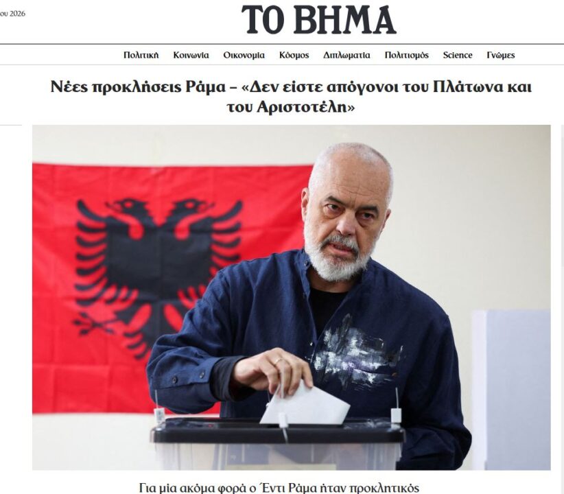 “Tovima.gr” shkruan se Rama ishte provokues, duke folur me përshkrime përçmuese për Greqinë dhe grekët: “Sfida të reja Rama – “Ju nuk jeni pasardhës të Platonit dhe Aristotelit”.