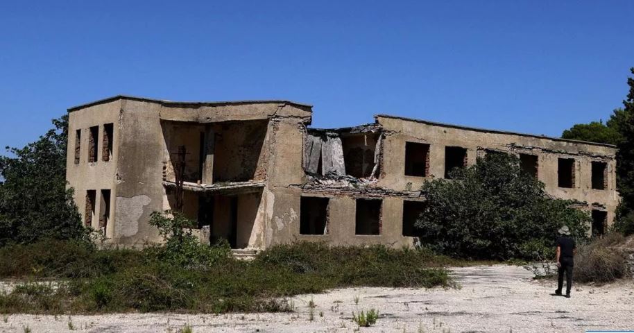 Në Sazan nuk ka dyqane që shesin artikuj plazhi ose restorante me menu shumëgjuhëshe. Tani për tani, nuk ka asgjë. Fiq të egër, man në sy të lirë, pisha të gjelbra të ndezura dhe ujë qelibar. Në mes të këtij kopshti të Edenit pa ujë e pa energji elektrike, mijëra bunkerë, mbetje ndërtesash të ngrënë nga bimët dhe kënga shurdhuese të gjinkallave. Këto rrënoja janë gjithçka që ka mbetur nga shtëpitë e mijëra ushtarëve që u vendosën këtu gjatë diktaturës socialiste të Enver Hoxhës, një prej regjimeve të ashpra, të mbyllura dhe paranojake në botë.