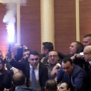 Brenda sallës, deputetët e opozitës bllokuan vendet e ministrave dhe foltoren, e u përplasën fizikisht me punonjësit e Gardës së Republikës. Flakadanët dhe tymueset u rikthyen sërish në Kuvend, teksa opozita akuzoi maxhorancën pas kërkesës së SPAK-ut për të marrë lejen për arrestimin e zv.kryeministres Belinda Balluku.