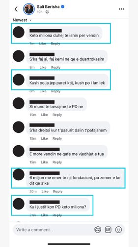 “Këto para janë hajni e pastër”, shkruan një komentues. Një tjetër e akuzon ashpër Berishën me fjalët: “O Sali, ke ngrënë paratë e popullit si qen”.