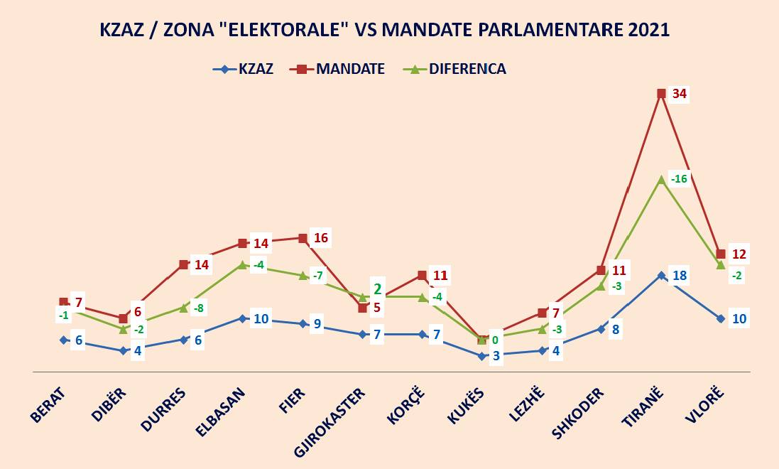 “KQZ ka programuar sipas ligjit 92 KZAZ (zona reale të administrimit zgjedhor). Kjo është një praktikë standard që aplikohet në cdo zgjedhje. Megjithatë, të dhënat teknike tregojnë se vijon të ruhet disbalancë në raportin midis KZAZ-ve (zonave reale zgjedhore) dhe mandateve parlamentare. Qytetet e mëdha kanë KZAZ të përqendruara, ndërkohë që qarqe të ndryshme reflektojnë ndarjen e re administrative të vitit 2014 (sipas bashkive). Për rrjedhojë, vetëm qarku Gjirokastër ka më shumë (+2) KZAZ sesa mandate parlamentare, ndërkohë që qarqet e tjera (me përjashtim të Kukësit) kanë raport të ndryshëm, (- ). Qarku Kukës ka 3 KZAZ dhe 3 mandate parlamentare”, thuhet në reagimin e ISP-së.