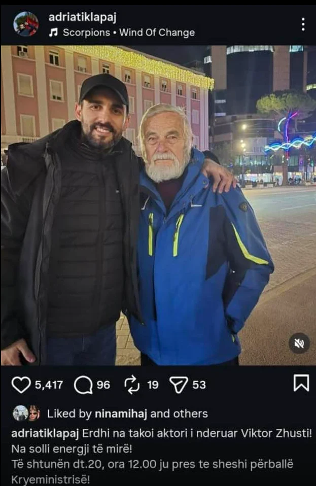 Aktori i njohur, Viktor Zhusti, ka reaguar ashpër në rrjetet sociale pas publikimit të një fotografie me kreun e lëvizjes “Shqipëria Bëhet”, Adriatik Lapaj.