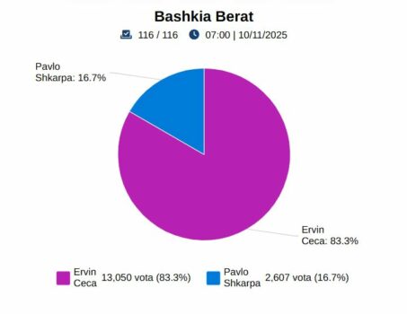 Ka përfunduar procesi i numërimit të votave edhe në Bashkinë Beratit. Përqindja në votime 19.88%.