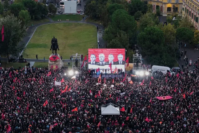 Mijëra njerëz protestojnë në kryeqytetin e Shqipërisë kundër gjykatës së mbështetur nga BE që ndjek penalisht veteranët e luftës së Kosovës
