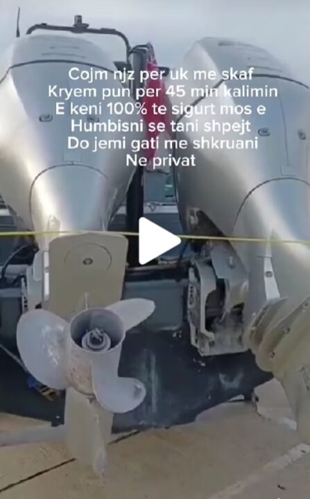 Një reklamë ku shfaqet imazhi i dy motoskafëve thotë në shqip: “Ne i çojmë njerëzit në Britani me skaf. Është një punë e përfunduar brenda 45 minutave. Kalimi është 100% i garantuar (i sigurt). Mos e humbisni [këtë mundësi]. Së shpejti do të jemi gati [të nisemi]. Shkruani privatisht.”