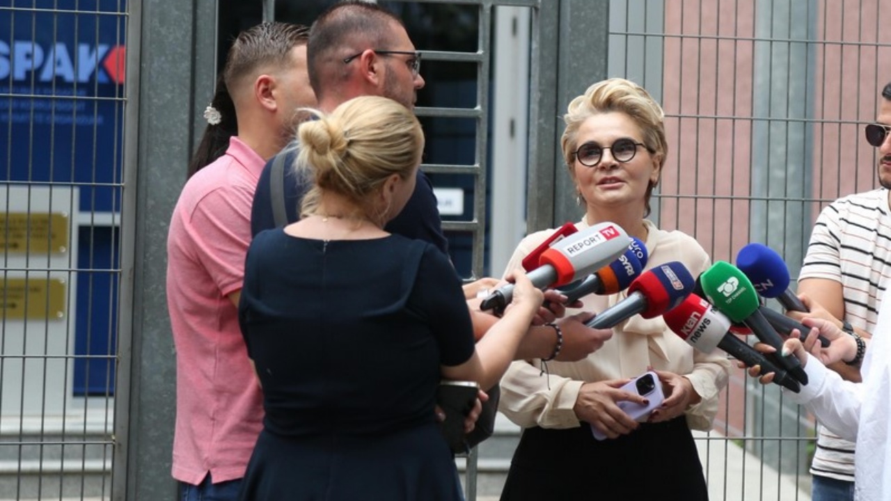Monika Kryemadhi foli sot për mediat jashtë ambienteve të SPAK. Kryemadhi u paraqit sot për njohjen e akuzës në SPAK.