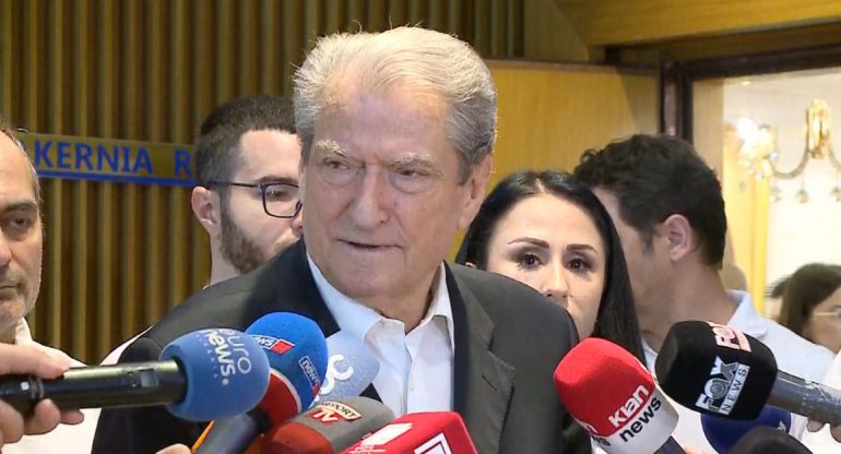 Kreu i PD, Sali Berisha, ka dhënë një deklaratë për mediat, pas takimit me një përfaqësues të shoqërisë civile për promovimin e librit “Shqipëria në rrezik”.