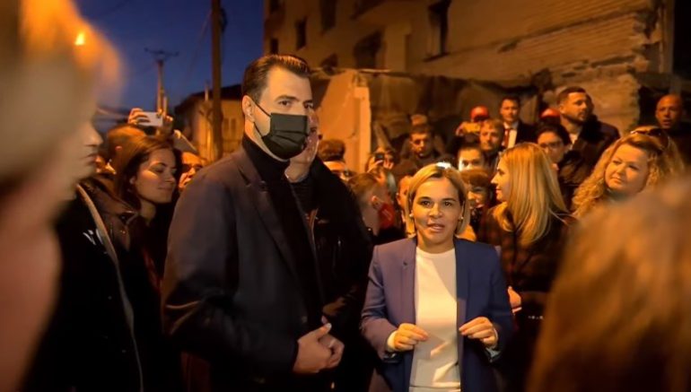 ‘’Jo pa qëllim, jemi sot këtu në këtë orë të vonë në Kombinat sepse këtu ku Edi Rama kërkoj të grabisi pronat tuaja, ku Edi Rama kërkon të grabisi shtëpitë tuaja. Jemi të dy bashkë edhe pse kemi 2 vjet që nuk ndahemi asnjë moment, erdhëm këtu sepse këtu fillon shtëpia e shqiptarëve,këtu fillon shtëpia juaj, sepse fronti opozitarë, që nuk është më front opozitarë po është fronti shqiptarë, mendon për shqiptarët, mendon për shtëpitë tuaja, mendon për familjet tuaja dhe ne jemi në shtëpitë tuaja, sepse ai po rindërton vetëm xhepat e vetë 3 dimensionalë dhe nuk po rindërton asnjë shtëpi të hallexhiut.