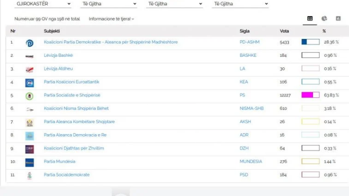 Sipas shifrave të raportuara zyrtarisht nga Komisioni Qendror i Zgjedhjeve, Partia Socialiste ka marrë 13238 vota.