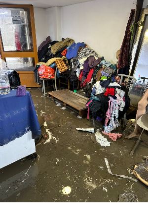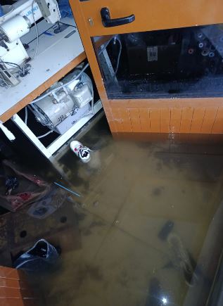 Pamjet që shihni vijnë nga një rrobaqepësi në zonën e Plazhit në Durrës. Siç shihet edhe nga pamjet e siguruara për BalkanWeb nga gazetarja Klodjana Haxhiaj, uji ka shkaktuar dëme të mëdha në ambientet e biznesit, duke shkatërruar makineritë dhe pajisjet e tjera të punës.