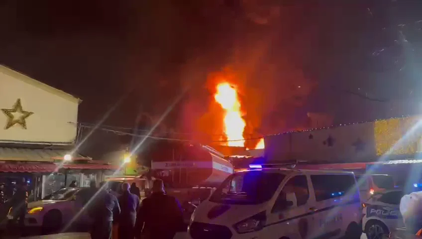 Këto janë pamjet nga tregu i rrobave të përdorura në 5 Maji në Tiranë. Flakët kanë përpirë me shpejtësi një pjesë të dyqaneve që ndodhen brenda tregut, ndërsa po përhapet edhe më tej. Dhjetëra forca zjarrfikëse ndodhen në vendngjarje dhe po punojnë për shuarjen e tyre.