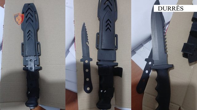 Në vijim të punës për identifikimin dhe kapjen e të dyshuarve, gjatë kontrollit në lokalin e shtetasit të arrestuar A. S., u gjetën dhe u sekuestruan si prova materiale dy thika, të cilat ai i mbante pa leje.