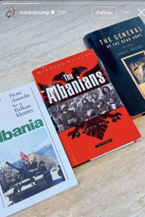 Ivanka Trump po bën studime kërkimore të shqiptarëve dhe Shqipërisë. Vajza e presidentit amerikan, Donald Trump, e ka bërë këtë të ditur në postimin më të fundit të saj në ‘Instastory’, përmes një fotoje ku shihen tre libra: