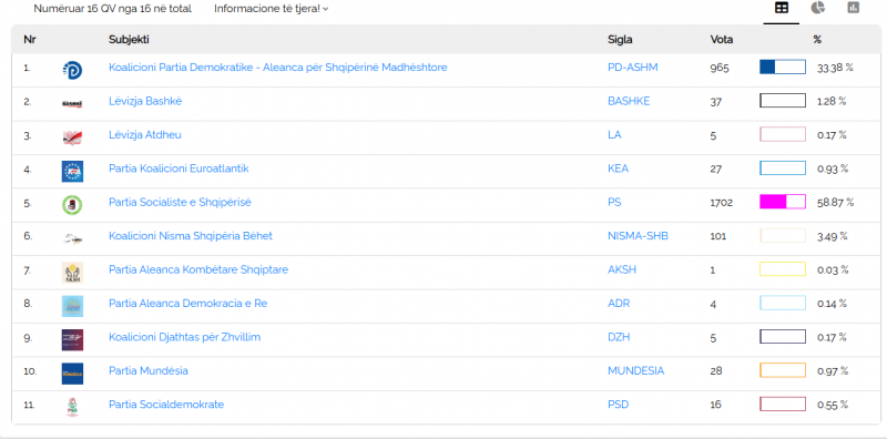 Sipas rezultateve përfundimtare, PS ka marrë 1702 vota, duke lënë pas Partinë Demokratike – ASHM me 965 vota. Ndërkohë, si forcë e tretë ka dalë Nisma “Shqipëria Bëhet”, e cila ka arritur të sigurojë 101 vota.
