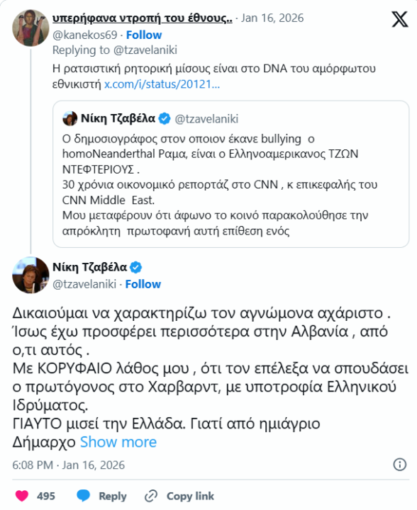 Niki Tzavella, përgjegjëse për përzgjedhjen e studiuesve të Evropës Juglindore në Harvard, zbuloi në një postim në X, se ishte ajo që zgjodhi kryeministrin, asokohe kryetarin e atëhershëm të bashkisë së Tiranës, për të studiuar me bursë nga një fondacion grek.