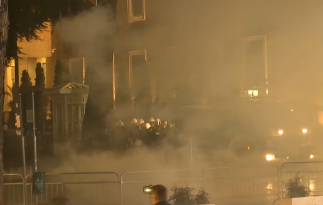 Pas mbarimit të fjalimit të Kryedemokratit Sali Berisha, situata është përshkallëzuar. Protestuesit kanë hedhur molotov dhe fishekzjarrë, duke mbuluar në tym kryeministrinë, por policia është përgjigjur menjëherë me gaz lotsejllës.