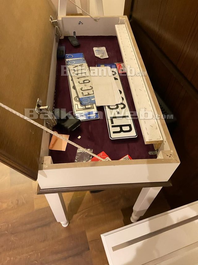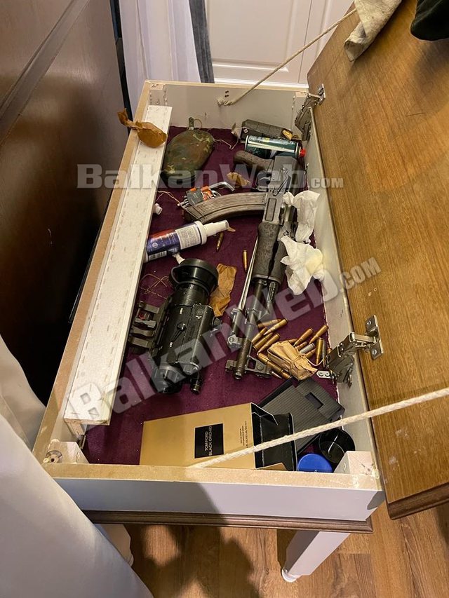 Policia ka gjetur aty disa targa të huaja, një kallashnikov, municione, dhe pajisje të tjera që përdoren për krime, si dhe një parfum “Tom Ford”.