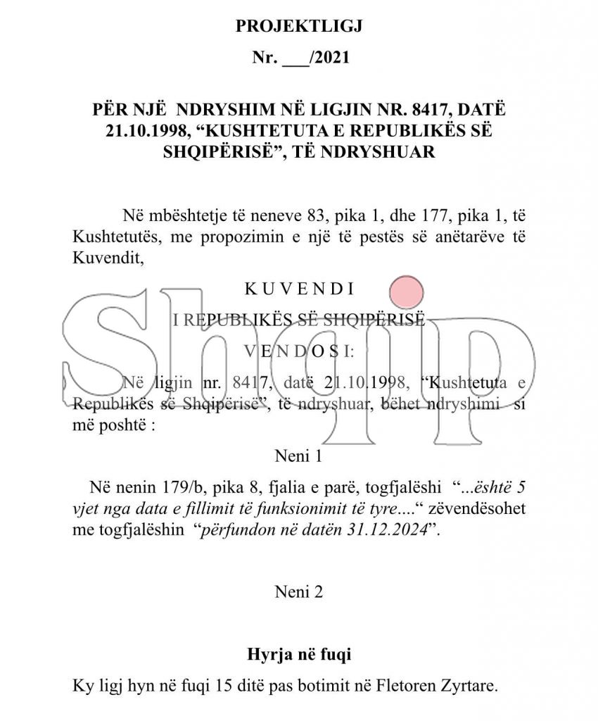 Në nenin 179.b,pika 8, fjalia e parë, togfjalësihi “…është 5 vjet nga data e fillimit të funksionimit të tyre…” zëvendësohet me rogfjalëshin “përfundon në datën 31.12.2024””, thuhet në dokumentin e dërguar në parlament.