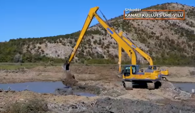 Ai publikon pamje nga puna për çlirimin e këtij kanali kullues që mundëson ujitjen dhe kullimin e tokave bujqësore në zonën e Shkodrës.