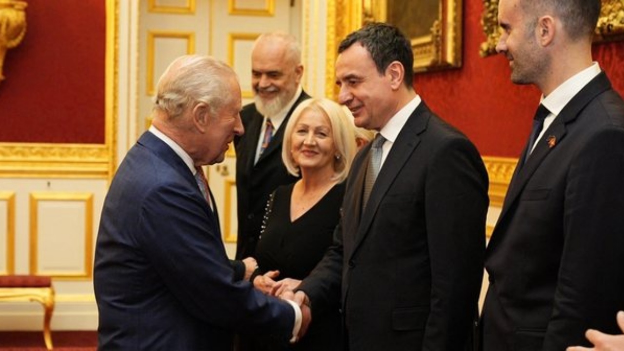 Siç shihet edhe në këto pamje që janë publikuar nga mediat e huaja, Rama qëndron pranë Albin Kurtit, të cilët kanë zhvilluar edhe një takim me mbretin Charles III. Takimi është zhvilluar paditen e djeshme, gjatë një pritjeje që iu be udhëheqësve të Ballkanit Perëndimor në Pallatin “St James”, Londër.