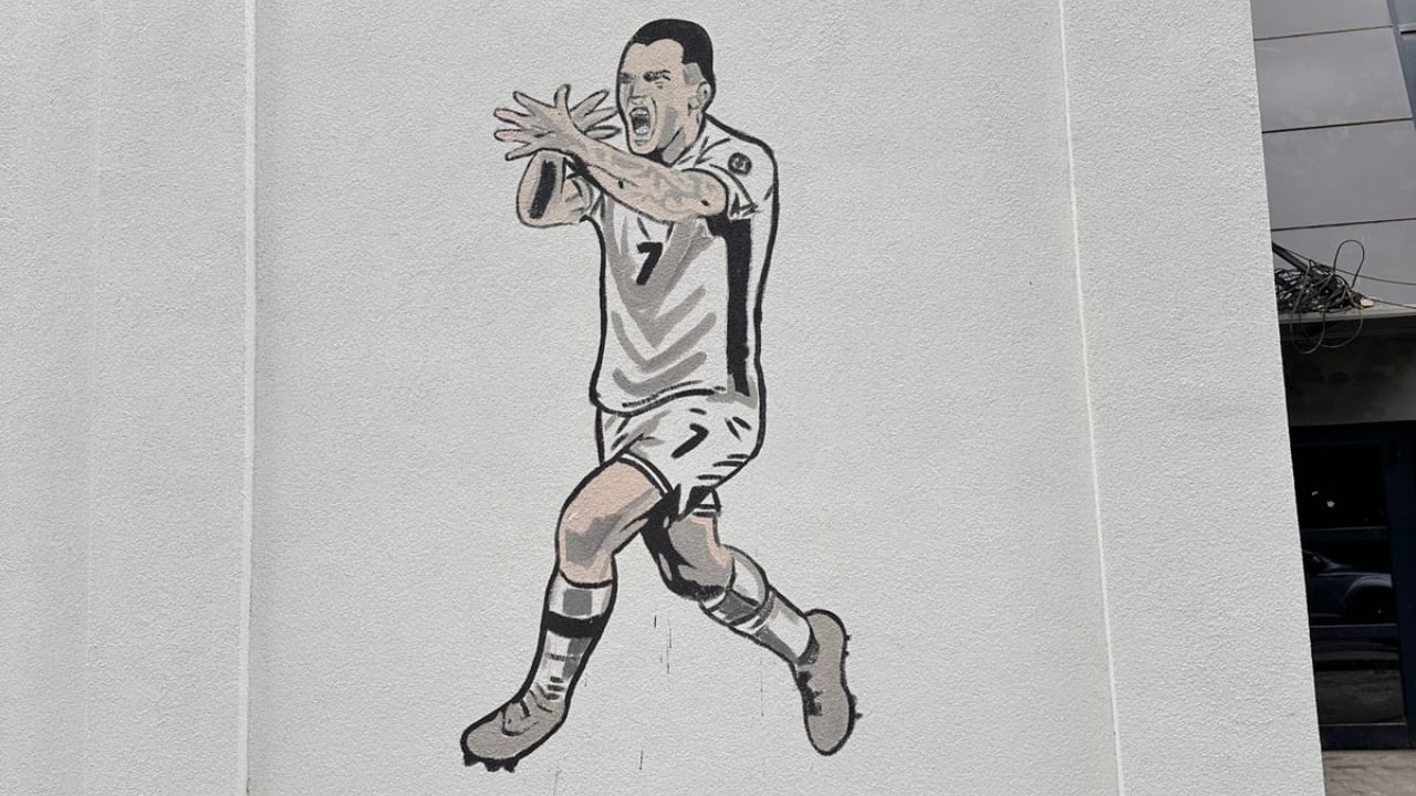 Në këtë murale është gdhendur momenti pas shënimit të golit, teksa Manaj bën me duar shqiponjën dykrenare.