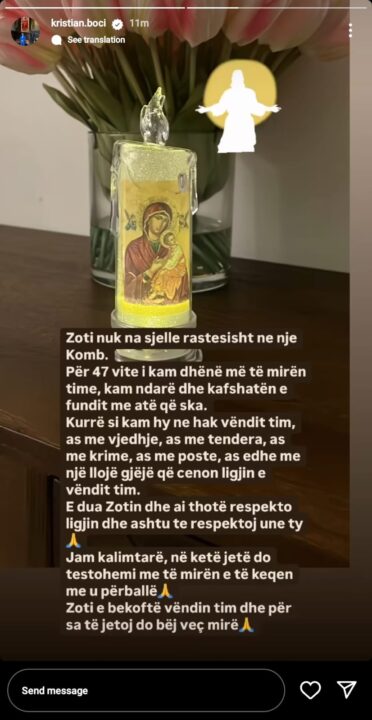 Në një postim në Instagram, Boçi shprehet se për 47 vite ka bërë gjithçka që ka mundur për ata persona që nuk kanë dhe po ashtu, se nuk i ka hyrë kurrë në hak vendit të tij me vjedhje, krime, apo me diçka që cënon ligjin. teksa shfaqet edhe si besimtar.