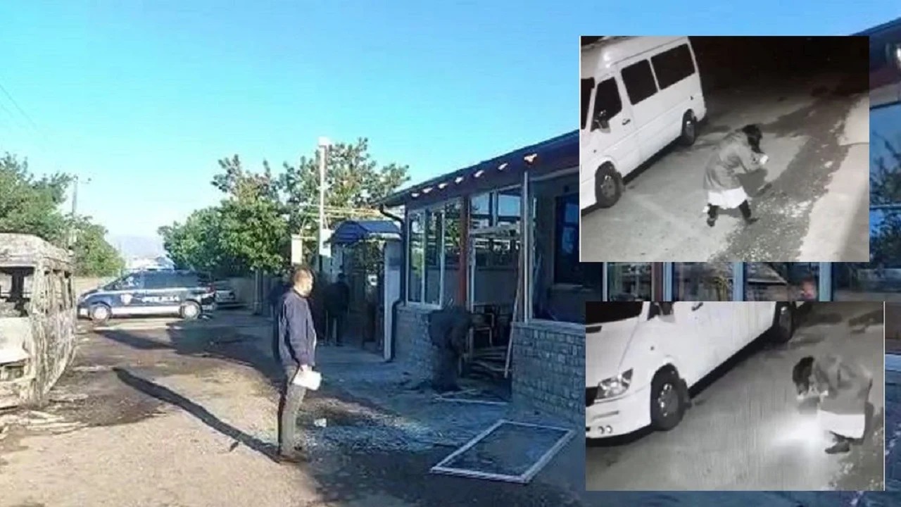 Top Channel ka siguruar pamjet e kamerave të sigurisë pranë biznesit. Siç shihet nga pamjet një grua në pamje të parë, por që mendohet se është një burrë i kamufluar si grua, vendosi tritolin pranë lokalit të policit dhe më pas i vuri zjarrin edhe fugonit në pronësi të policit, që ndodhej pranë lokalit.